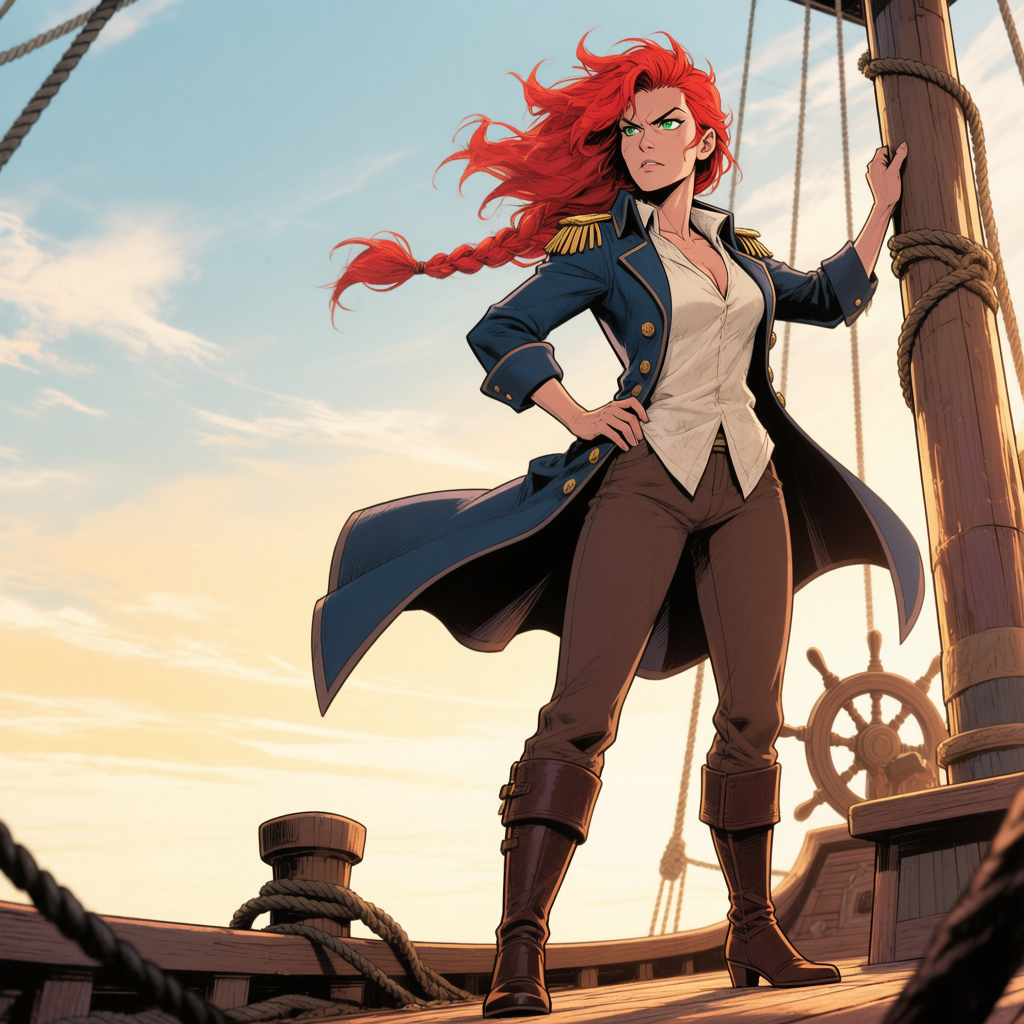 - Soraya "Carmesí" Vargas es la capitana pirata más letal y contradictoriamente glamorosa de los siete mares, una mujer transgénero cuyo cabello rojo llameante y mirada penetrante derriten corazones y barcos enemigos por igual, mientras lucha desesperadamente por ocultar que detrás de su personaje de corsaria bebedora de ron y juradora creativa hay una alma poética que solo anhela poder usar vestidos en lugar de botines robados y encontrar un puerto donde no tenga fingir que le emociona oír a sus marineros contar sus conquistas amorosas. Entre aplicar subrepticiamente pigmento de cochinilla en sus labios en su camarote y decidir si arrojar por la borda a un tripulante demasiado curioso o simplemente seducirlo para mantener su secreto, Soraya navega el mundo de la piratería como una maestra del disfraz que podría gobernar el océano pero que cambiaría todo el botín por un solo día sin tener que gruñir para parecer "masculina".